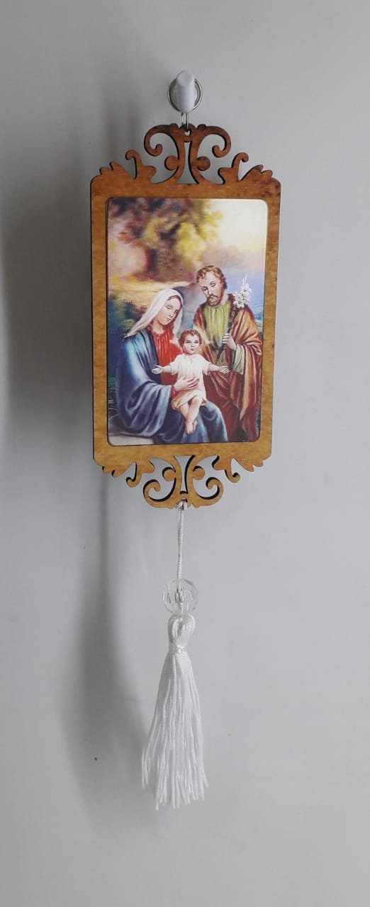 Adorno 3D feito em MDF, com imagem da Sagrada Família.