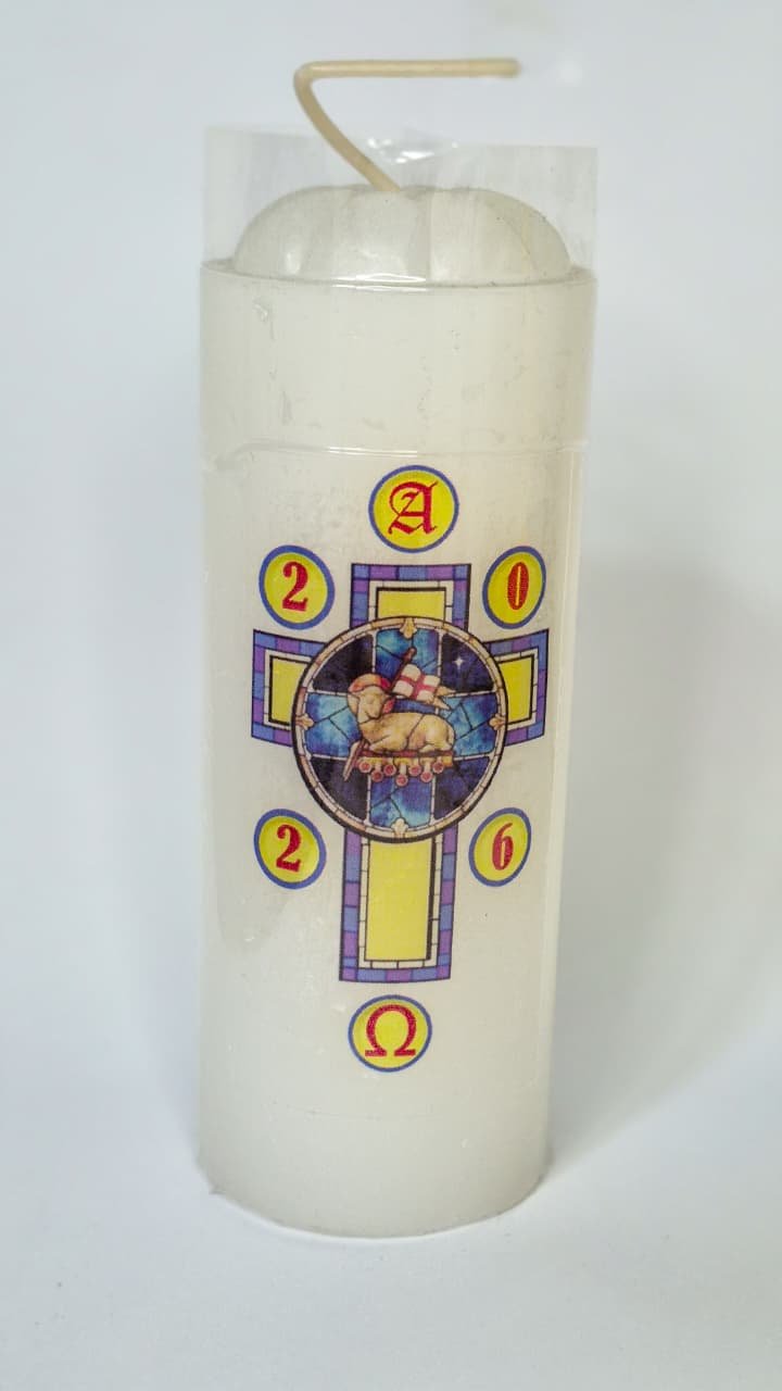 Mini Círio Pascal Médio - Adesivado - Cordeiro 02 - Diâmetro 5 cm -