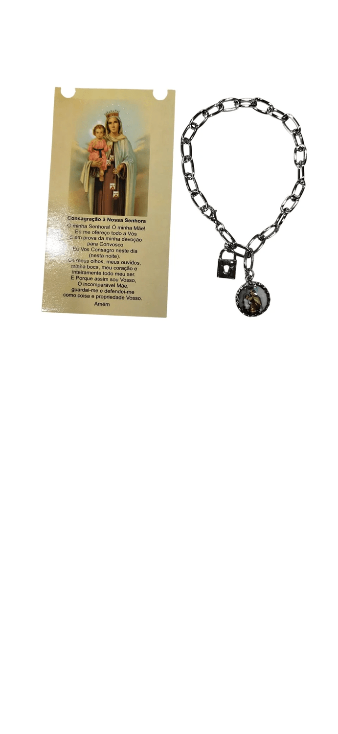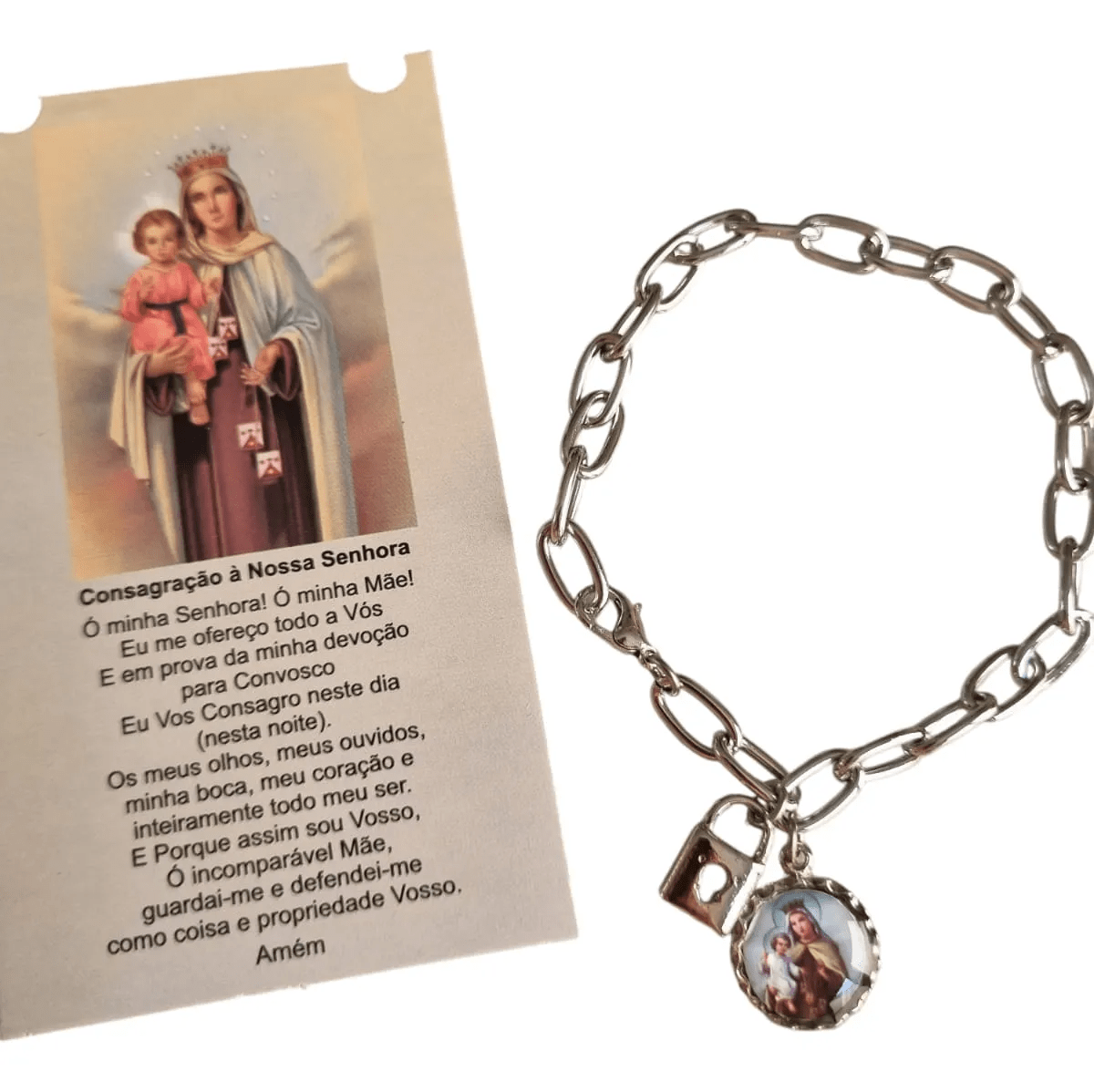 Demonstre sua fé e confiança no escapulário de Nossa Senhora do Carmo com esta pulseira especial.