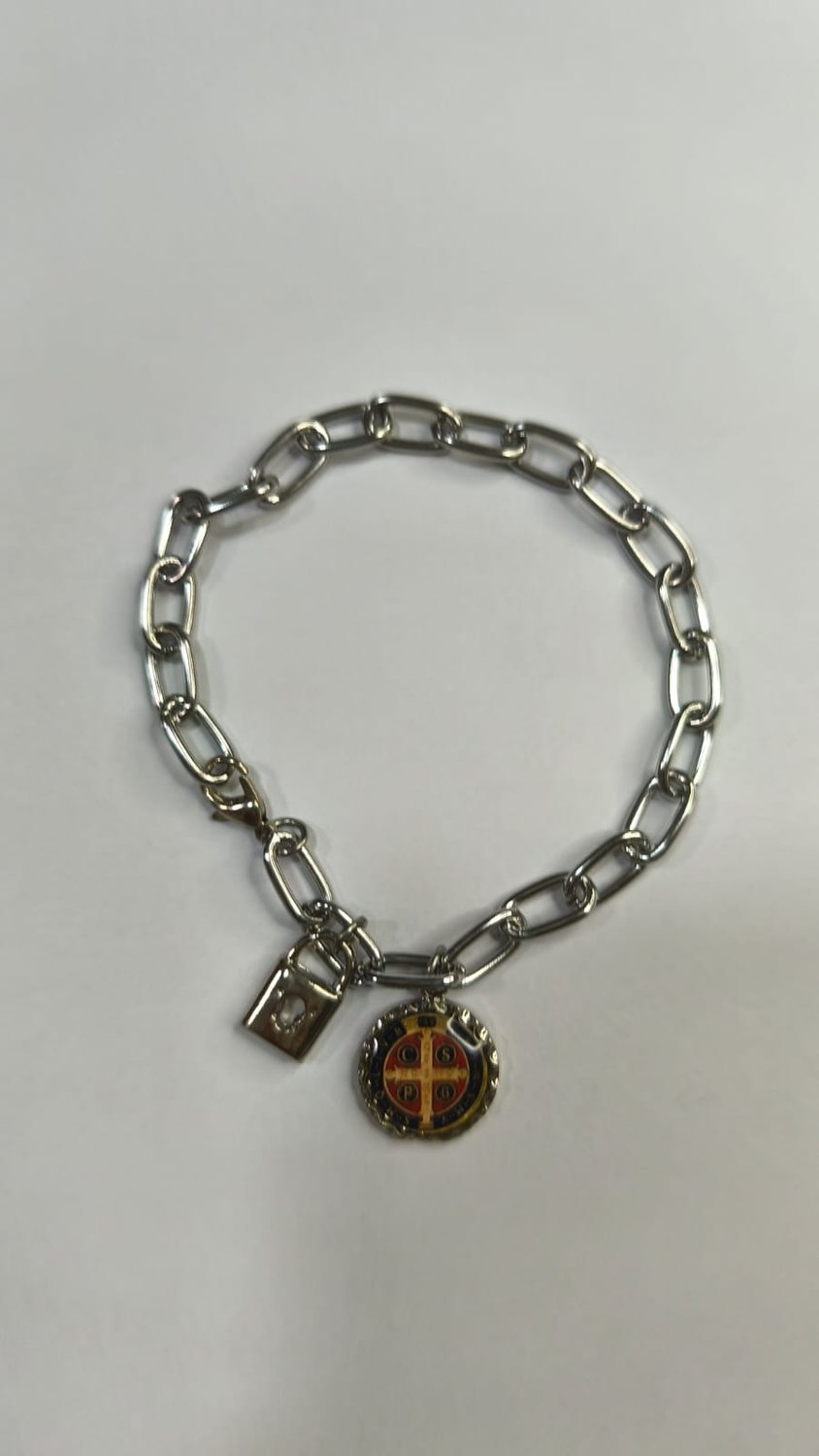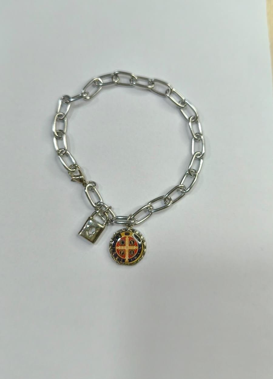 Pulseira Cadeia de Consagração São bento - Cor:Prata;Tamanho:ÚNICO