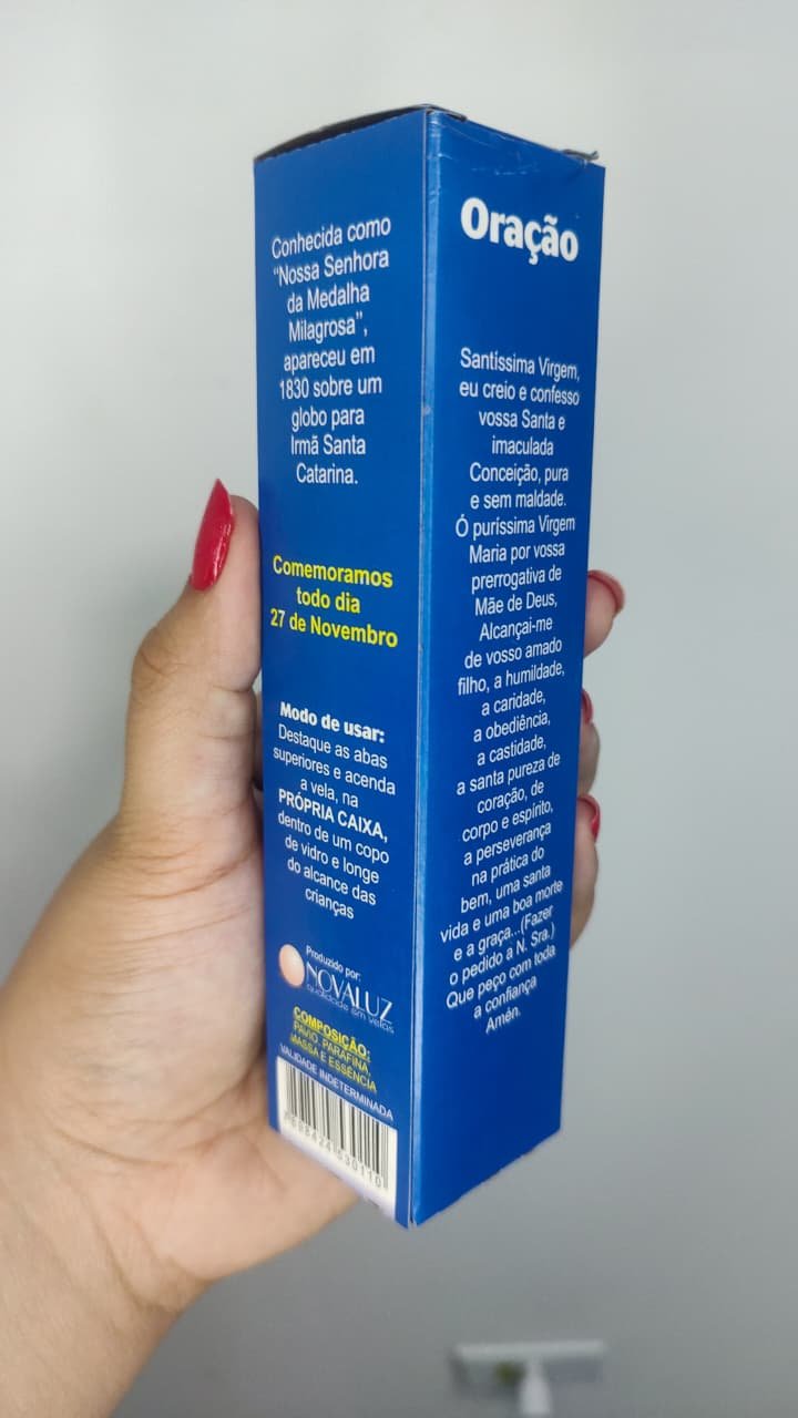 *Acenda esta vela dentro da própria caixa, utilizando um castiçal que a mantenha na posição vertical. (pode ser um copo de vidro).