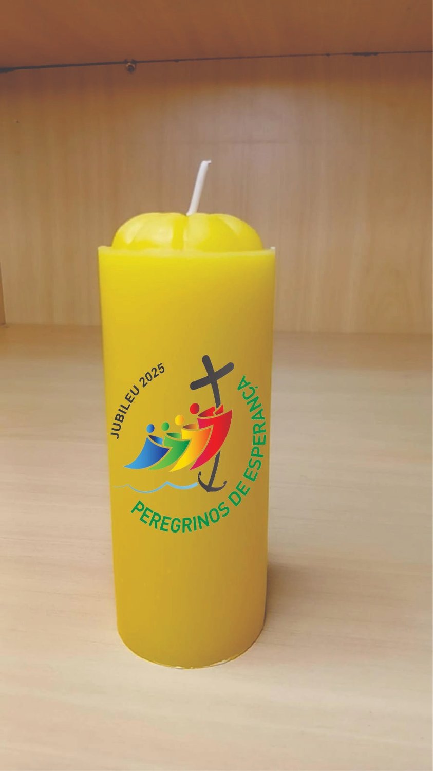 Vela Jubileu 2025 12 x 5 cm. Vela com impressão do logótipo oficial do Jubileu 2025 Peregrinos de Esperança.